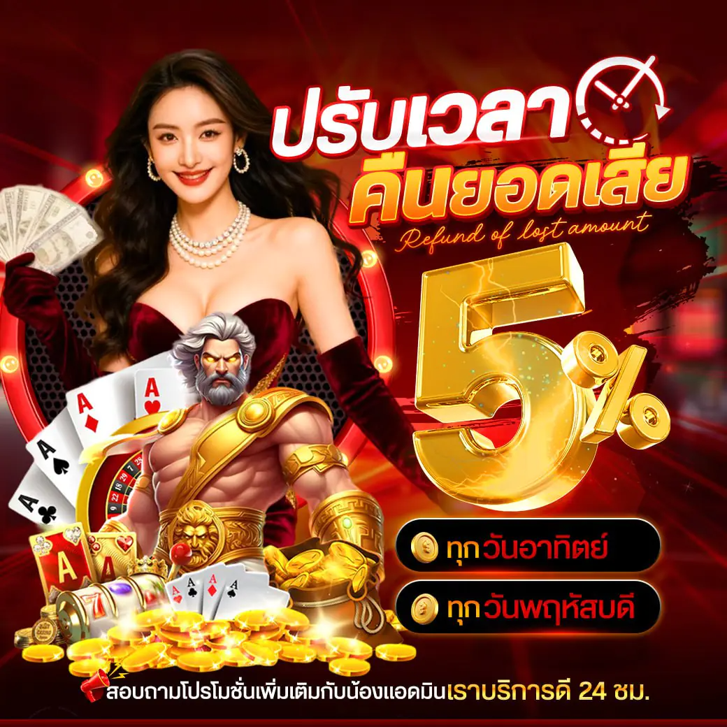 ตอบ : โบนัสต้อนรับ 100% สูงสุด 5,000 บาท เครดิตฟรี 300 บาทเมื่อแนะนำเพื่อน คืนยอดเสีย 10% ทุกสัปดาห์
